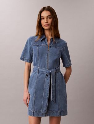 €99.90(inc. VAT)Our summer-ready denim shirt dress, reworked in a tailored fit with a zip-through front and waist-defining tie belt.