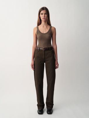 A fine 18-gauge ribbed 100% merino tank top. Subtly sheer with a fitted silhouette.
