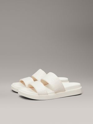 The sandal upper is crafted with 73% recycled polyester, created by reprocessing existing materials.