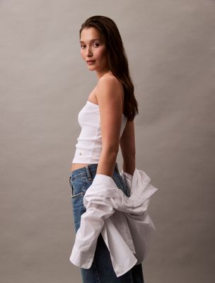 Ribbed Cotton Strapless Top