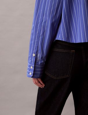Gestreiftes cropped Button-Down-Hemd mit kastiger Passform