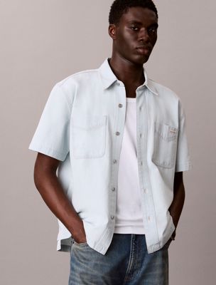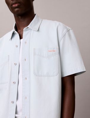 Kastig geschnittenes Jeanshemd mit kurzen Ärmeln