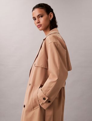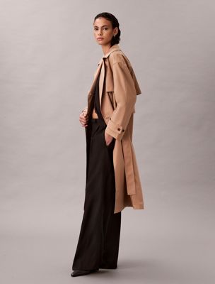 Klassischer, langer Trench Coat aus Baumwoll-Mix