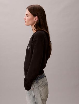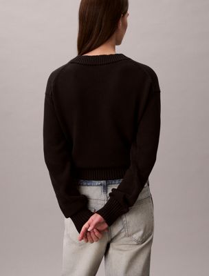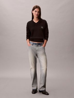 Pullover mit Badge und V-Ausschnitt aus Baumwollstrick